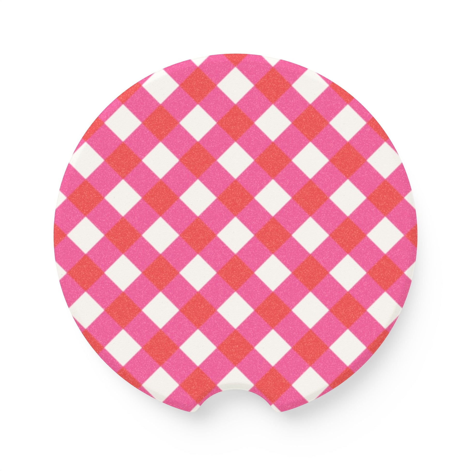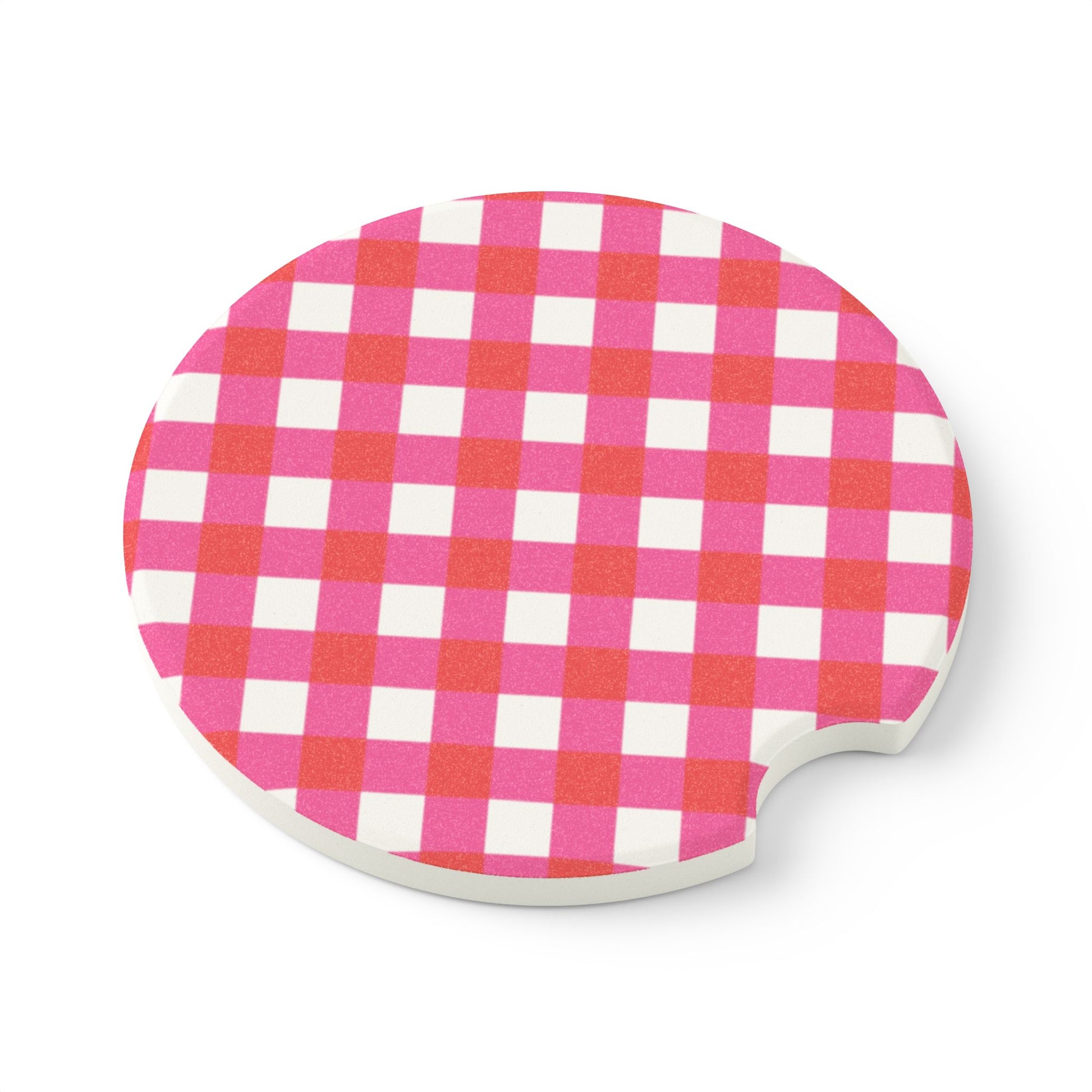 Preppy Pink Red Gingham Soapstone Car Coaster